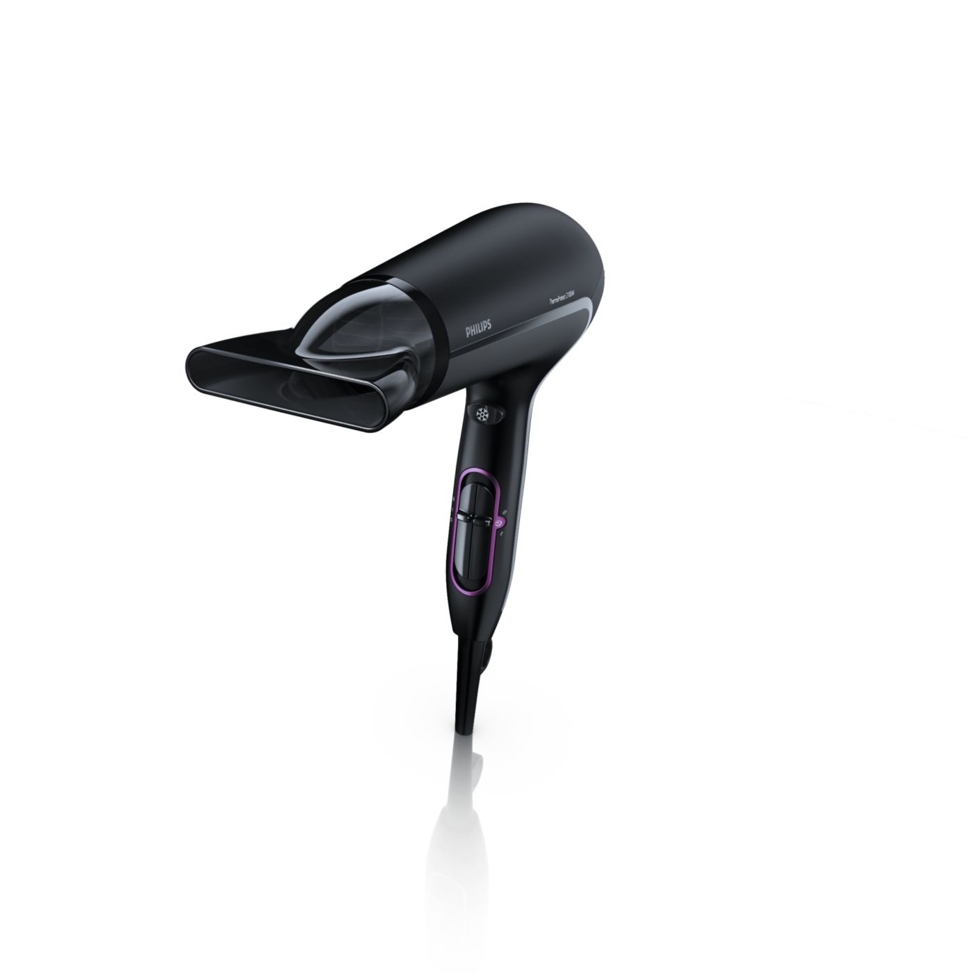 La temperatura ThermoProtect proporciona un ajuste óptimo de calor durante el secado y constituye una protección adicional contra el sobrecalentamiento del pelo. Disfrutá del mismo flujo potente de aire y conseguí resultados óptimos, sin descuidar la salud de tu cabello.