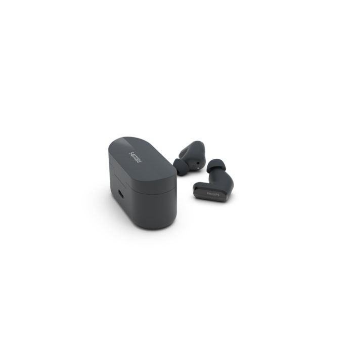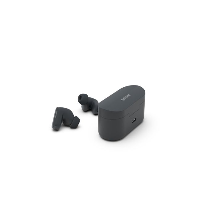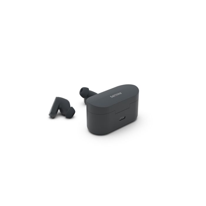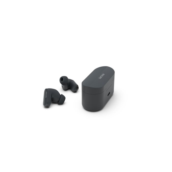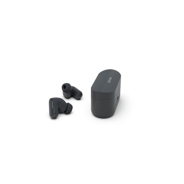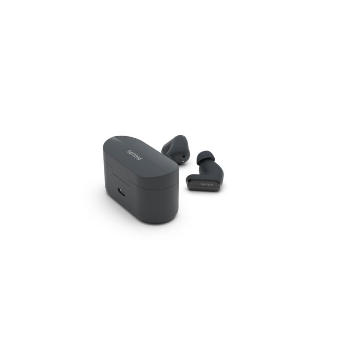 La reducción de ruido silencia el ruido externo, incluido el viento, para que pueda concentrarse en sus canciones o llamadas. Déjelo en modo automático o utilice la aplicación para auriculares Philips para ajustarlo. ¿Quiere escuchar mejor lo que ocurre a su alrededor? Toque un auricular para activar el modo de alerta.